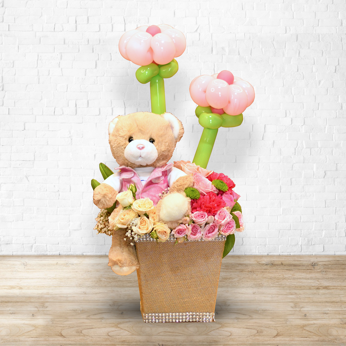 Buy this Blooms Teddy Flower Balloon Arrangement