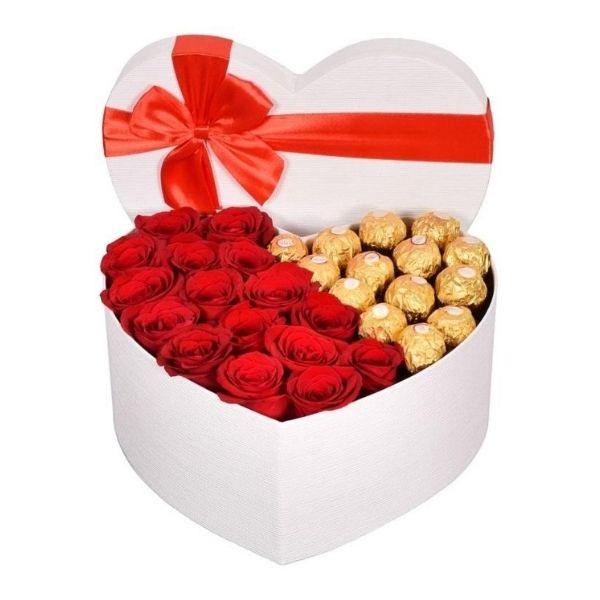 A luxurious pairing of elegant roses with delicious Ferrero Rocher chocolates makes this bouquet a perfect mix of charm and indulgence. The richness of the roses complements the gold-wrapped sweets, creating a thoughtful and delightful gift. This bouquet offers a romantic gesture along with a sweet treat, perfect for creating joyful and heartfelt moments.