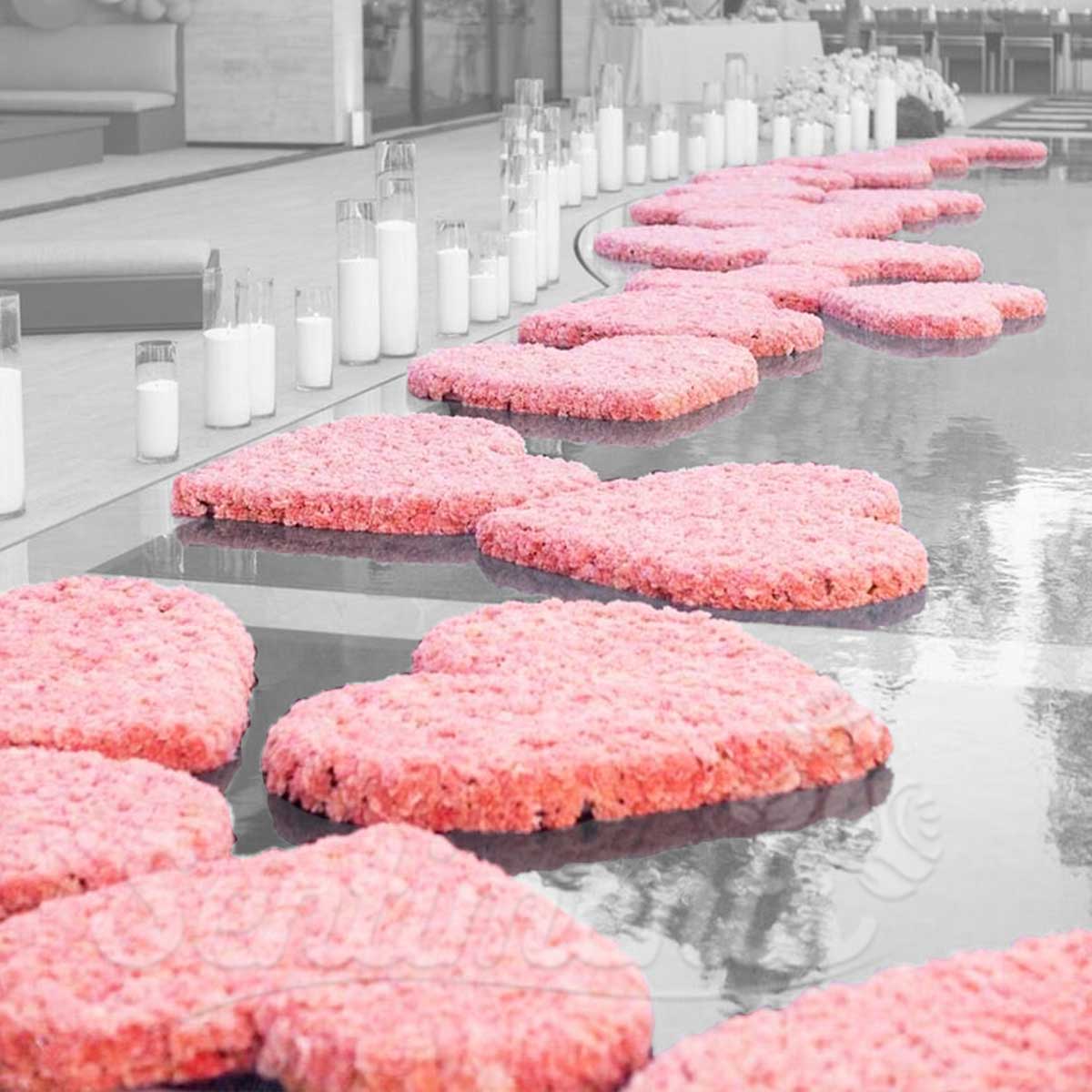 Add a romantic and dreamy touch to your engagement with floating floral heart arrangements. Placed on a pool or water feature, these decorations create a stunning visual that draws attention and adds charm to the event.