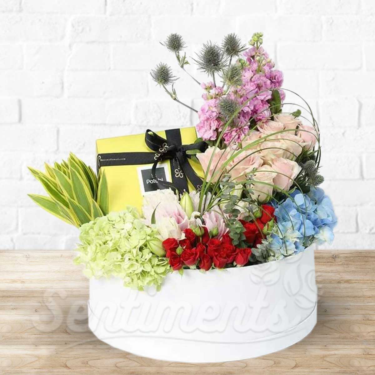 All Occasion Mixed Fresh Flower Arrangement with Patchi Chocolate