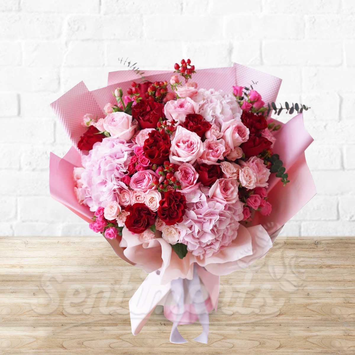 - Lovely Pink & Purple Hydrangea Hand Bouquet