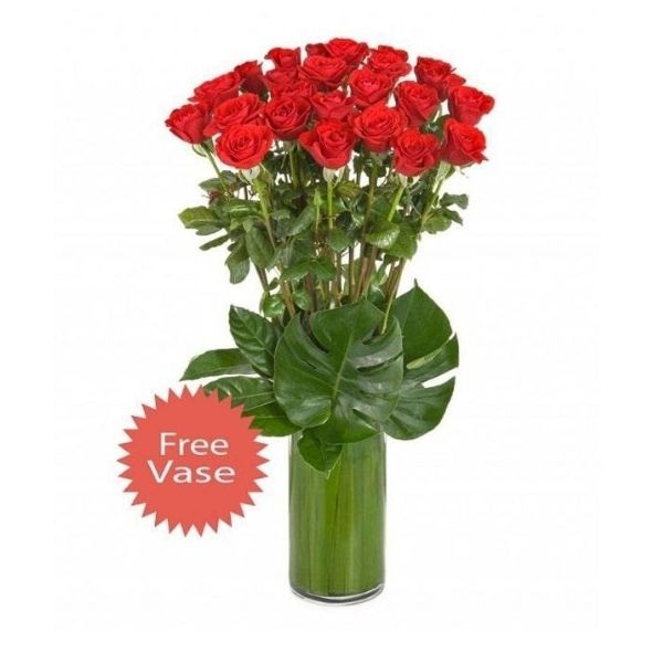 A must but glass vase flower décor that suits any place which needs to be filled with romance. Are you looking for something that can double your chances in romance then this is the perfect pick for you? Roses especially have been a symbol of love and romance for the time humanity has existed and log stemmed roses are an all-time favourite for women. So, if you are ready to sweep your lady love off her feet then the 24 long stem Red Roses vase is the best choice to boost romance and love.