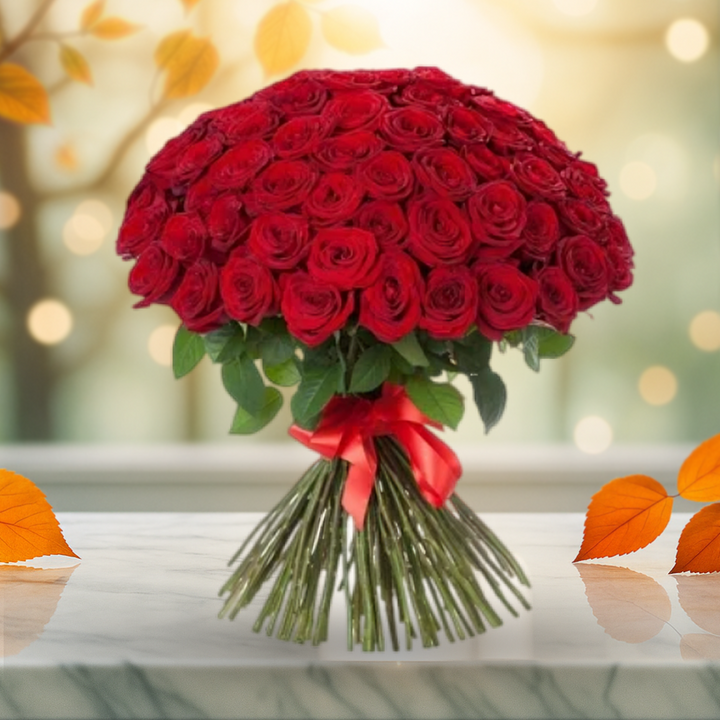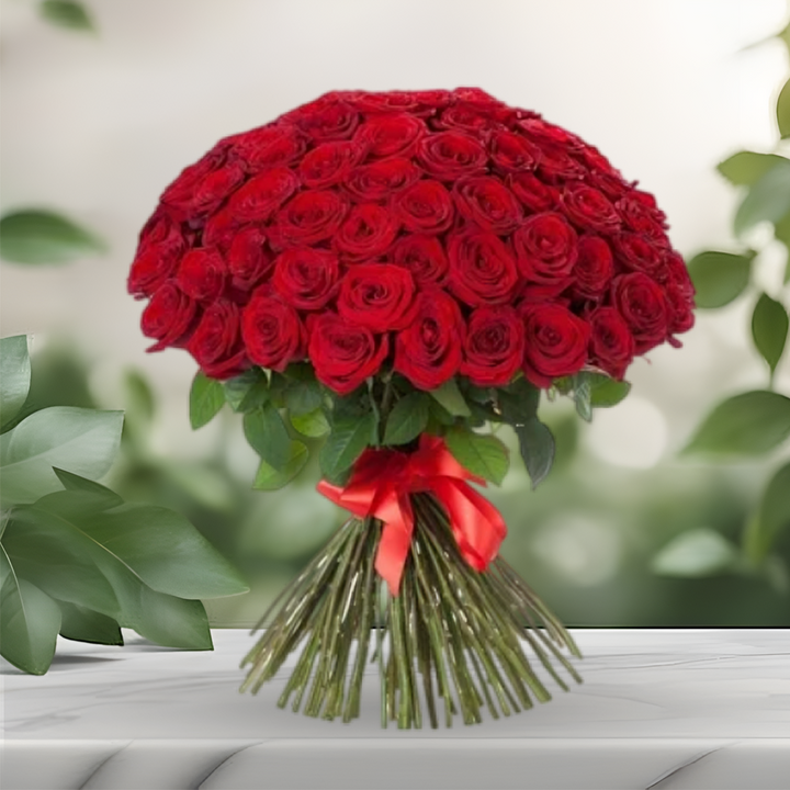 Red roses are associated with love, beauty, and passion. With the 75 red roses, a gift of love, you can express your sentiments, warmth, and care for your beloved without speaking any words. A Giant red rose’s bouquet is ready with the fresh buds of love to send from the bottom of your heart. You can send these beautiful flowers on special occasions to your beloved, giving a loving message of how much importance they keep in your life. With the help of sentimental flowers, you can send this fabulous bouquet to the doorstep of your loved one.
