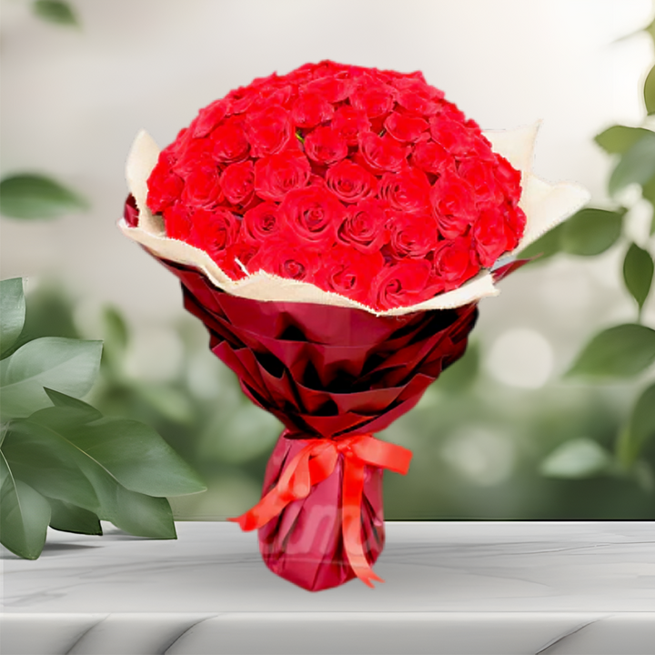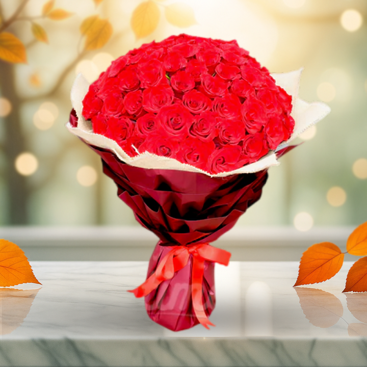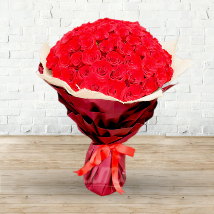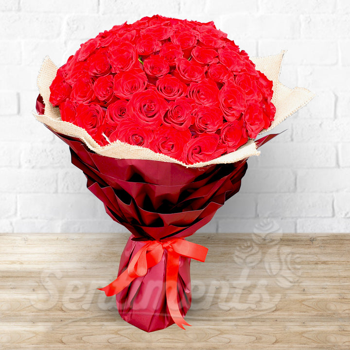 Hand-tied bouquet of Freshly Pick Red Roses and gently crafted in a beautiful wrapping.