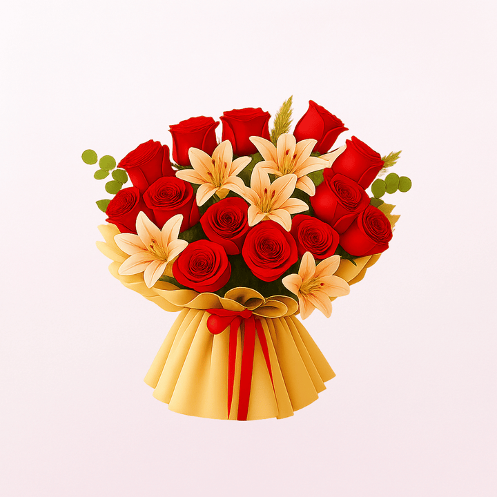 This elegant bouquet blends vibrant red roses with soft, fragrant lilies to create a timeless gift for any occasion — birthdays, anniversaries, romance, or heartfelt celebrations. Each stem is hand-selected and wrapped beautifully to deliver a truly memorable gesture.