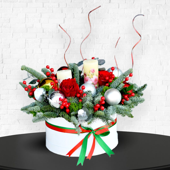 Please note that the CANDLE/BOX / BASKET design in the image may run out of stock at the time of order and will be replaced by a similar Christmas themed box of the same or higher value.