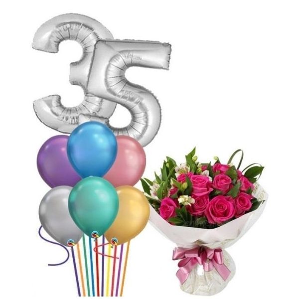 Number Balloon bouquet has 6 Assorted Chrome Latex with Free Ultra Hi-Float.