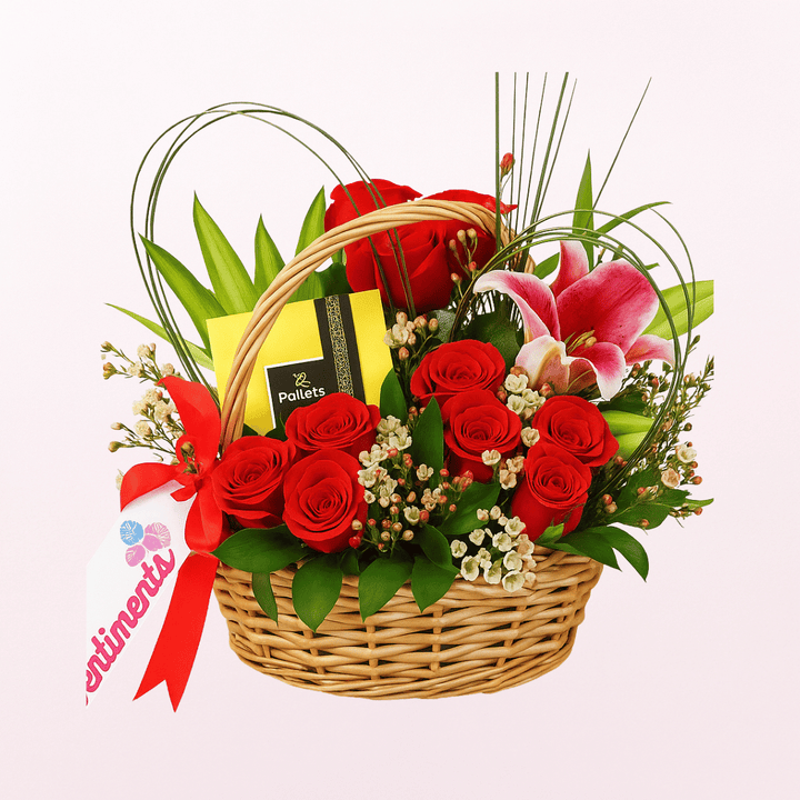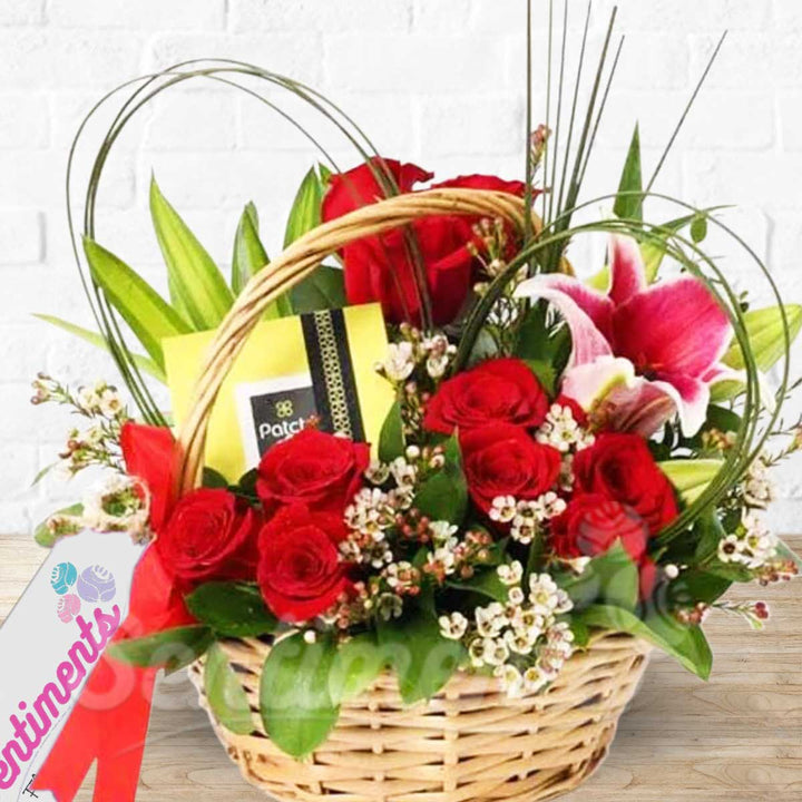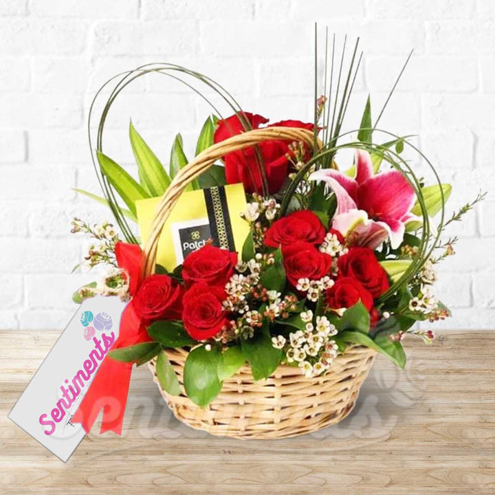 Basket of Blooms Mixed Fresh Flower Arrangement with Patchi Chocolate