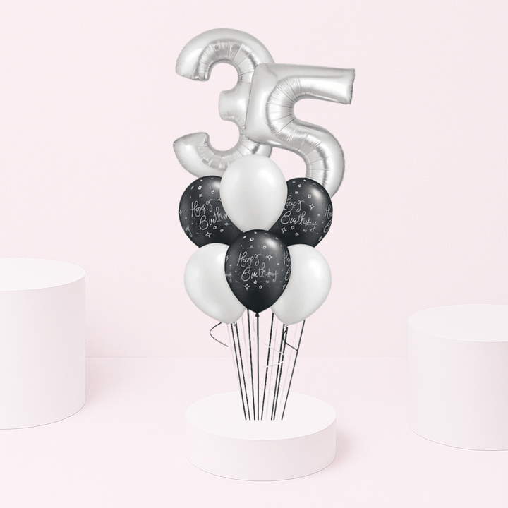 BLACK BDAY SPARKLES, SILVER ANY NUMBER BALLOONS