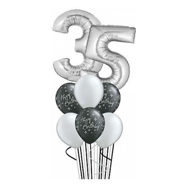BLACK BDAY SPARKLES,SILVER ANY NUMBER BALLOONS