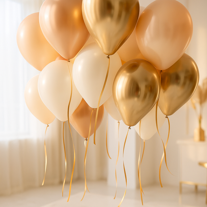 Cream Chrome Helium Balloons - Mix of Chrome Gold, White & Blush Latex with String & Ultra Hi-Float