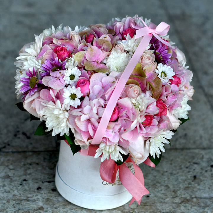 Girly Mixed Flowers Heart Box Fresh Flower Arrangement