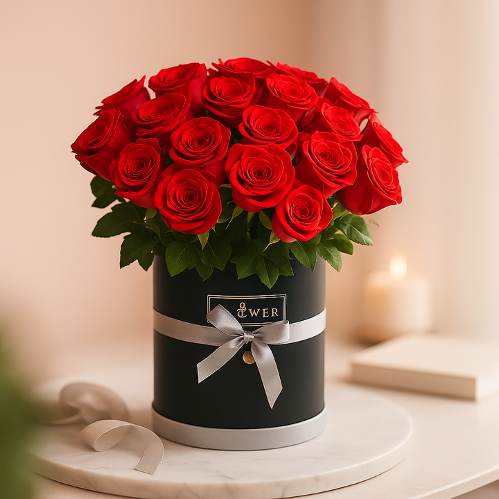 The importance of rose flowers has been in our life since ancient times, which symbolizes beauty, deep love, respect, and attachment. We have a specialization in preparing bouquets which our customers always appreciate. We offer you a lovely The Boxed for special occasions dressed in a black gift box carrying fresh, deep rose flowers. Each rose is a witness to love, beautiful memories, deep feelings, sentiments, and attachment in this box. You have an excellent opportunity to surprise your sweetheart this Christmas, Valentine's Day, or any other occasion. It can quickly grab the attention of anyone