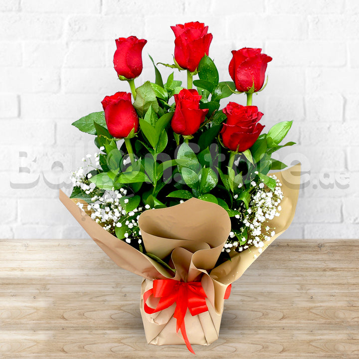 Half Dozen Red Roses Simple Arrangement -6Roses