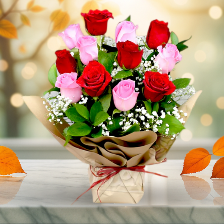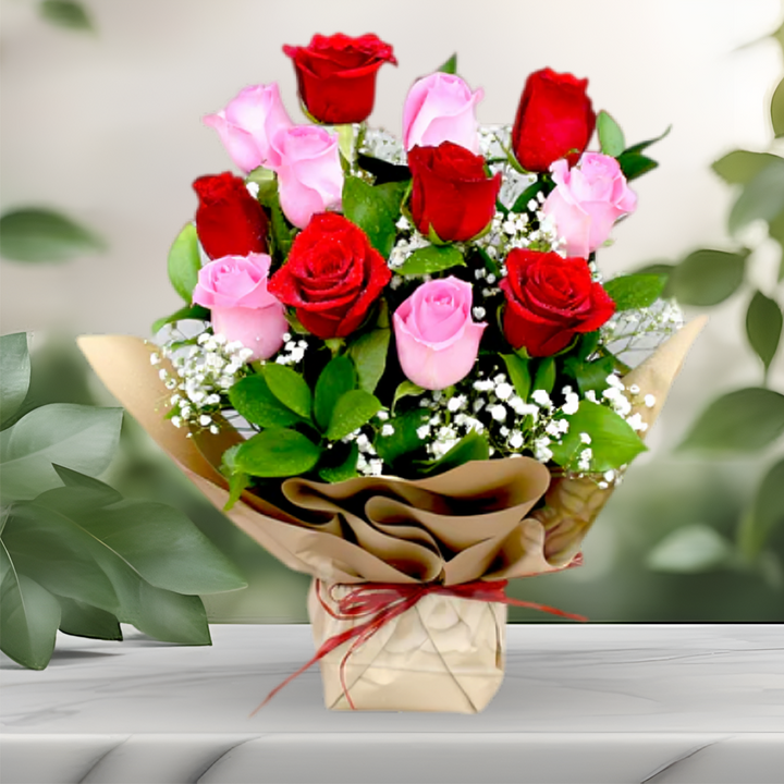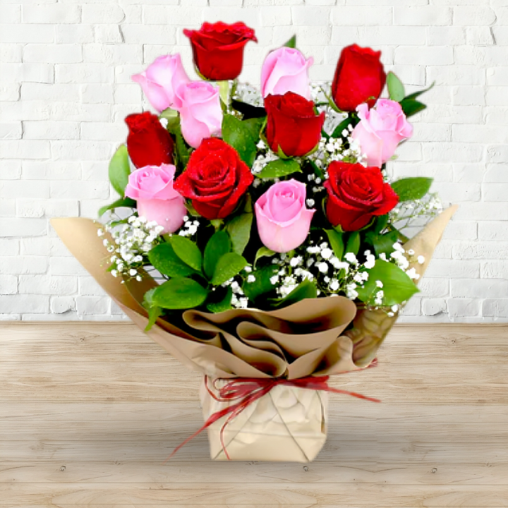 Half Dozen Mixed Pink & Red Roses Simple Arrangement