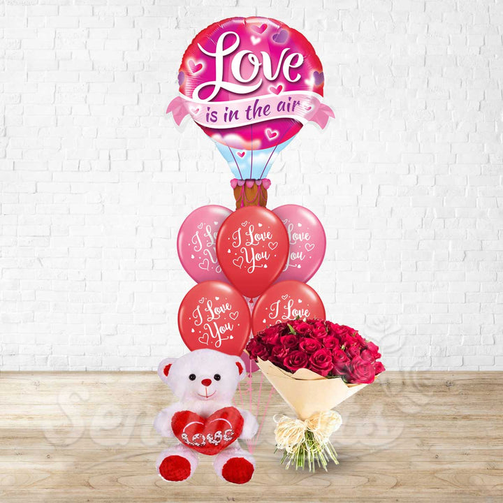 Heart & Kisses HVD 24 Red Roses White Teddy Combo - 3 in 1