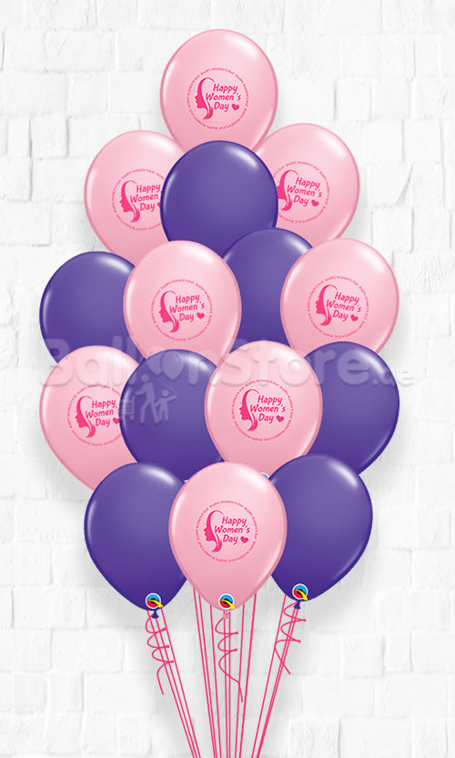 International Women's Day Pink And Purple Violet Latex Balloon Bouquet - 15count