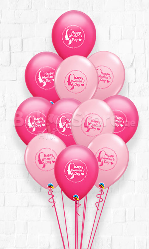International Women's Day Pink and Wild berry Latex Balloon Bouquet on a Weights and Hi-float