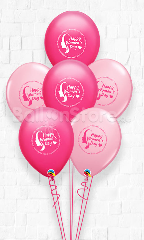 International Women's Day Pink and Wild berry Latex Balloon Bouquet on a Weights and Hi-float