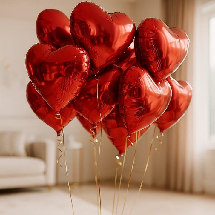 Make it extra special with a ceiling full of Love Red Heart Foil Helium Balloons arriving Our Love Red Heart helium ceiling balloon bundle includes 12 inflated balloons. Whether you're collecting from our store or having them delivered inflated to your door, they're ready to be enjoyed instantly.
