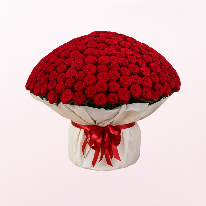 Red roses are associated with love, beauty, and passion. With the 300 red roses, a gift of love', you can express your sentiments, warmth, and care for your beloved without speaking any words. A Giant red rose’s bouquet is ready with the fresh buds of love to send from the bottom of your heart. You can send these beautiful flowers on special occasions to your beloved, giving a loving message of how much importance they keep in your life. With the help of sentimental flowers, you can send this fabulous bouquet to the doorstep of your loved one.