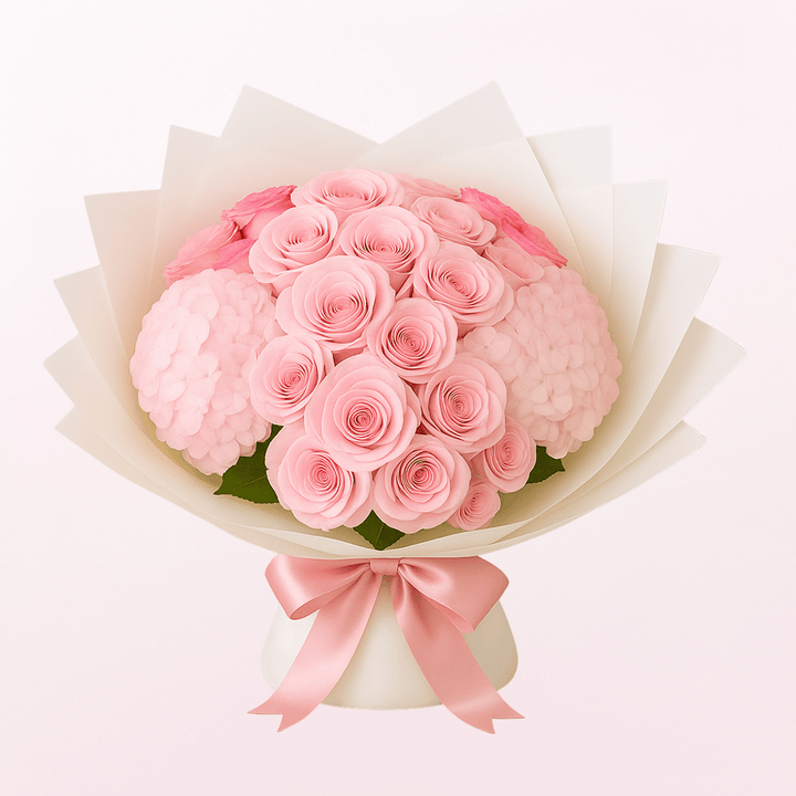 Lovely Pinky Mixed Hydrangea & Pink Roses Fresh Flower Hand Bouquet