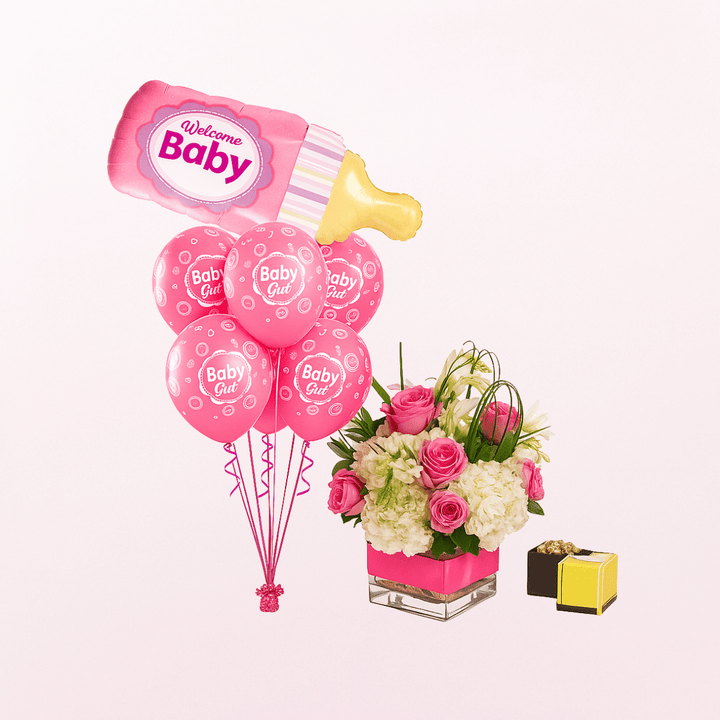 Luxury Baby Girl Flowers with Balloons & Chocolates