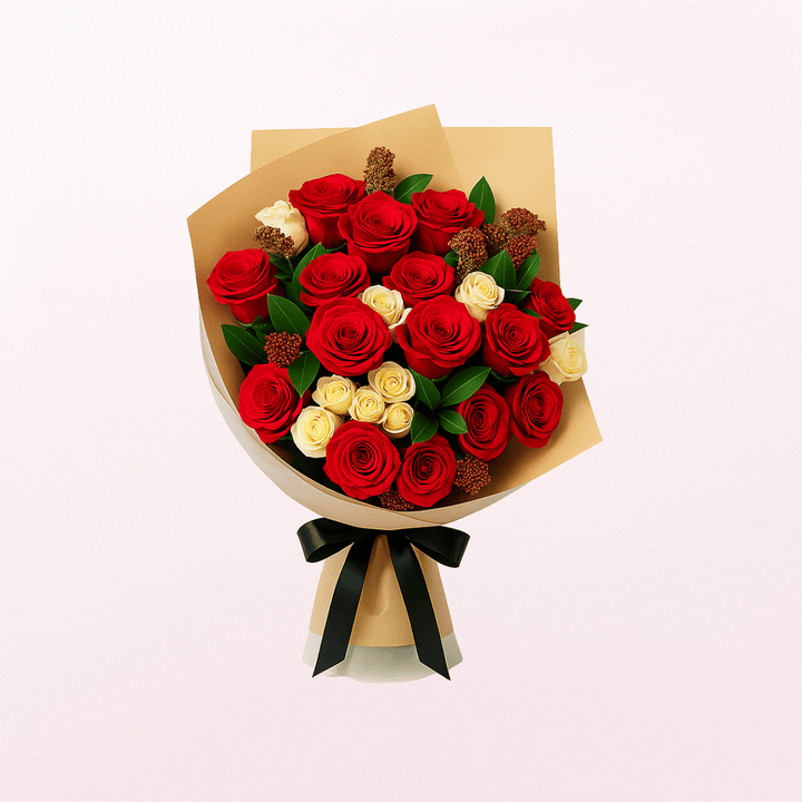 Add colours to the life of your loved ones. Share your adoration to your dear one through flowers. A special day is incomplete without flowers, delight it through birthday flowers, love and romance flowers, anniversary flowers, or as congratulations flowers. Present your loved ones a ravishing bouquet with a combination of wild Ruscus leaves and exquisite scarlet roses. Fresh and musky scented, hand-picked Ruscus and roses from farms wrapped up with love to send to your loved ones.