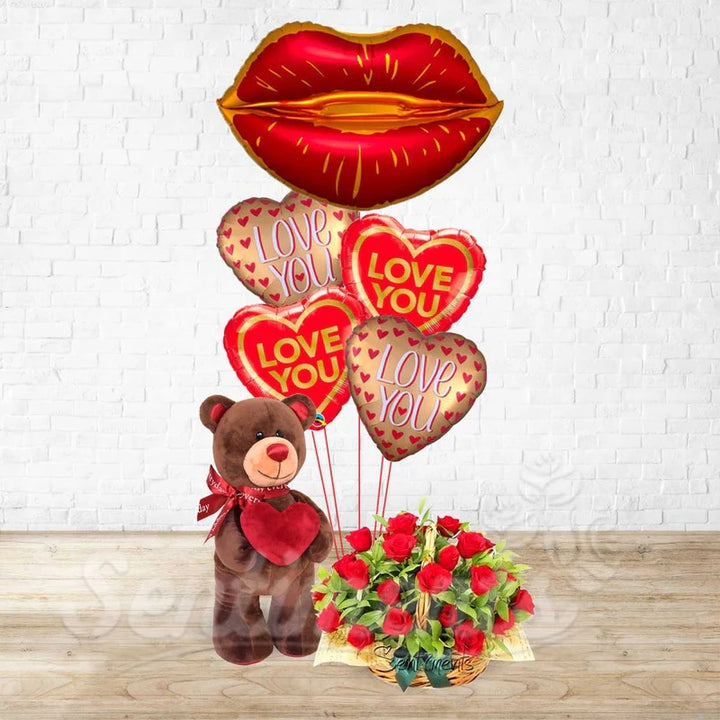 Satin Smoochy Lips Big Teddy Basket of Love Combo - 3 in 1