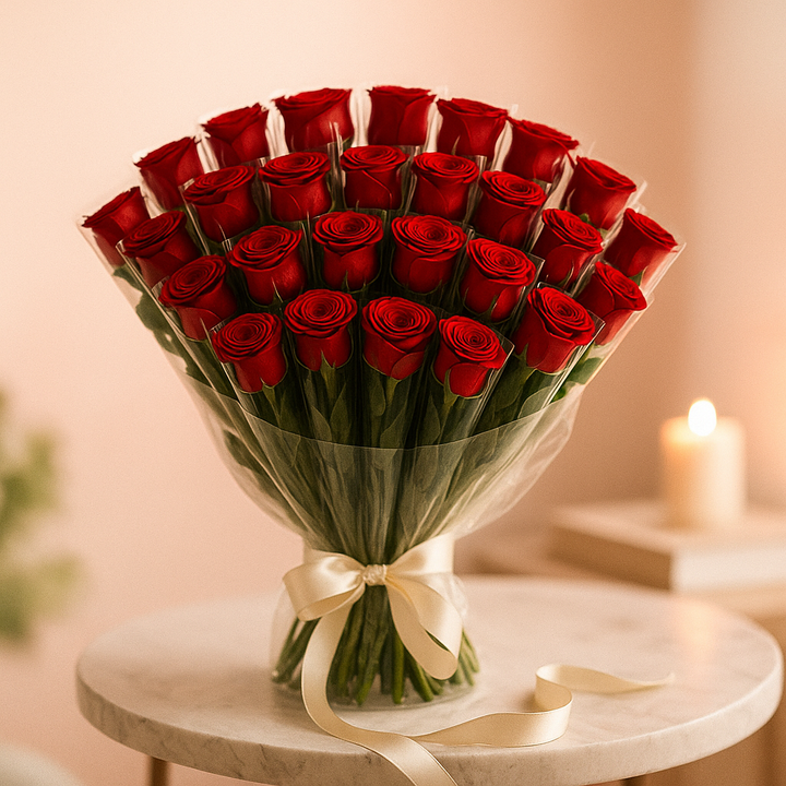 Product photos are styled for visual presentation and may show a different number of roses. However, we always deliver the exact quantity mentioned in your selected option. For custom quantities or personalized wrapping, feel free to message us anytime.