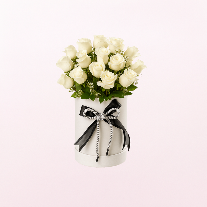 White colour symbolizes purity, light, innocence, and goodness. These white roses look attractive and are one of the favourite colours of roses. These flowers are in great demand on every special occasion. We have arranged 18 beautiful, fresh, and incredible 18 white rose flowers in a white gift box. If you want to show your sentiments, dedication, and love, this bouquet is an outstanding opportunity to send it to your loved ones. Without saying anything, you can tell through the aromas of these white roses how deeply you take care of them. You can send this beautiful bouquet delivery anywhere in Dubai through our fastest online delivery system.